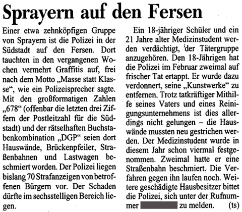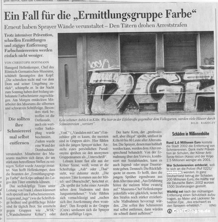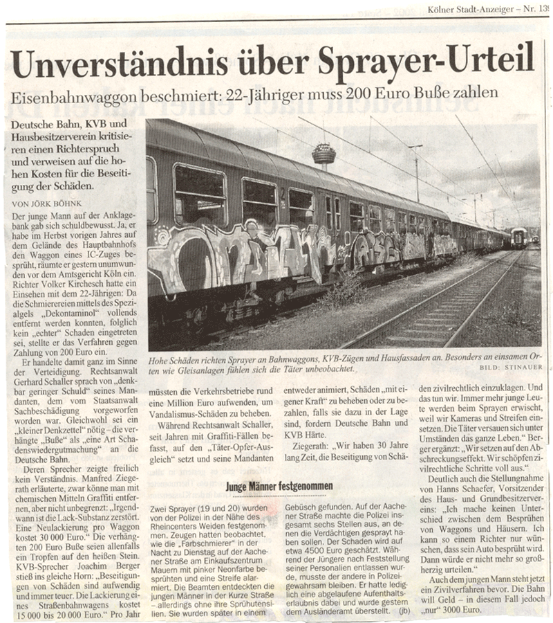 den Schaden, der durch Graffiti entsteht. Parallel erschienen in