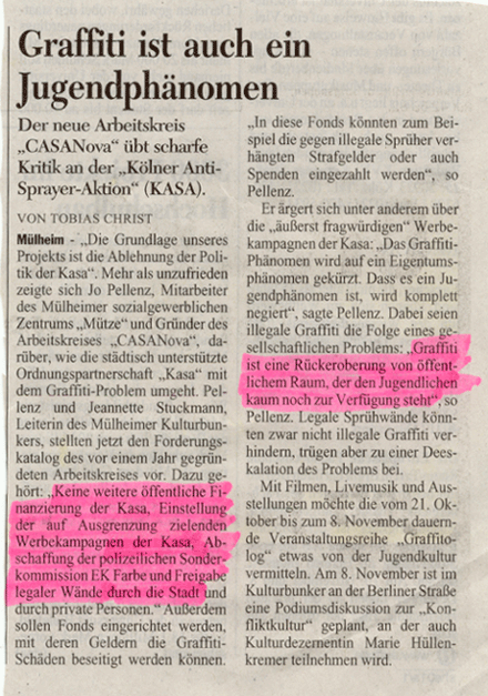 Um der Anti-Graffiti-Liga eine kritische Diskussion entgegen zusetzen